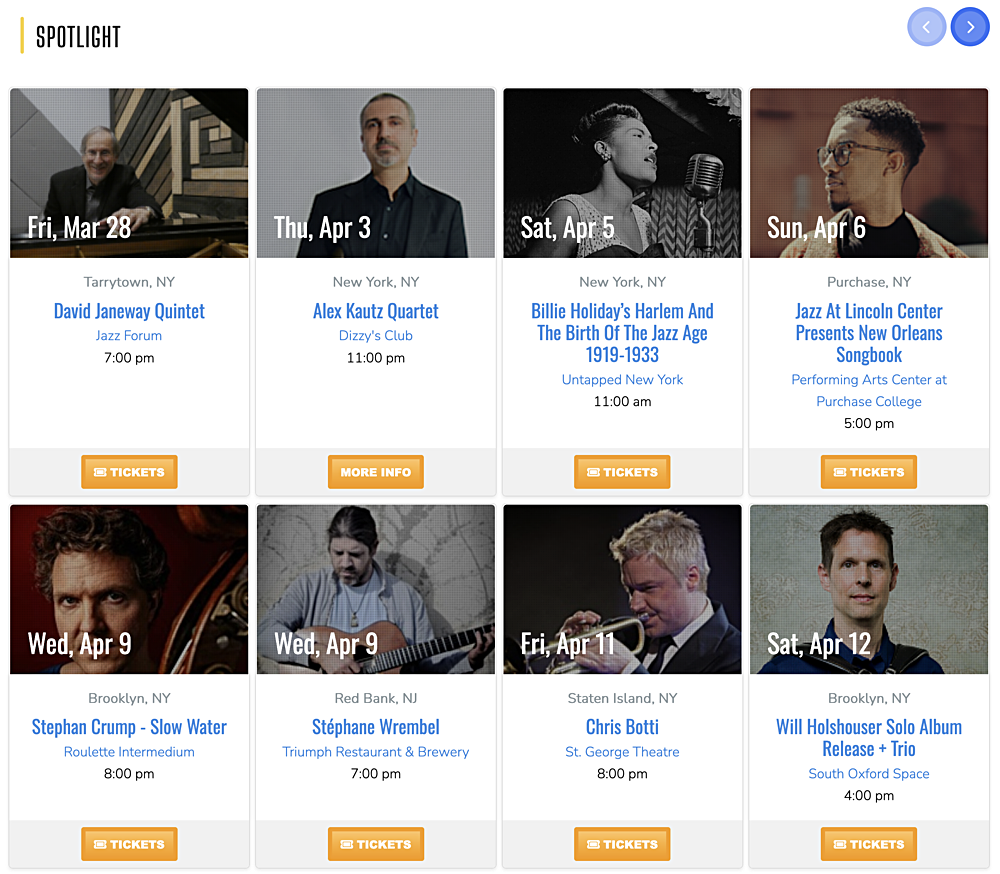 Spotlight events are also identified with a gold star on all Jazz Near You pages.